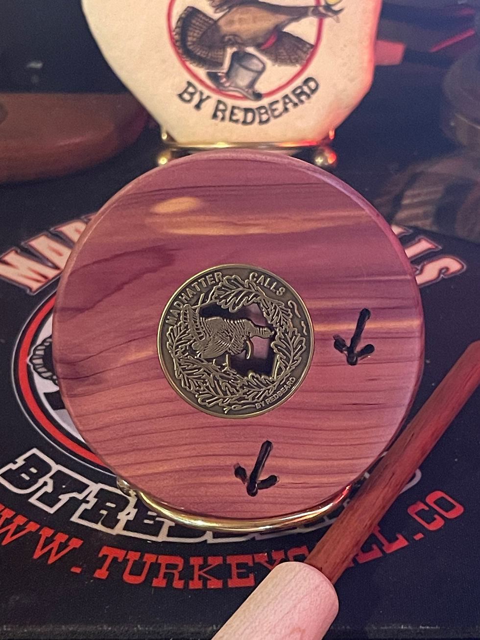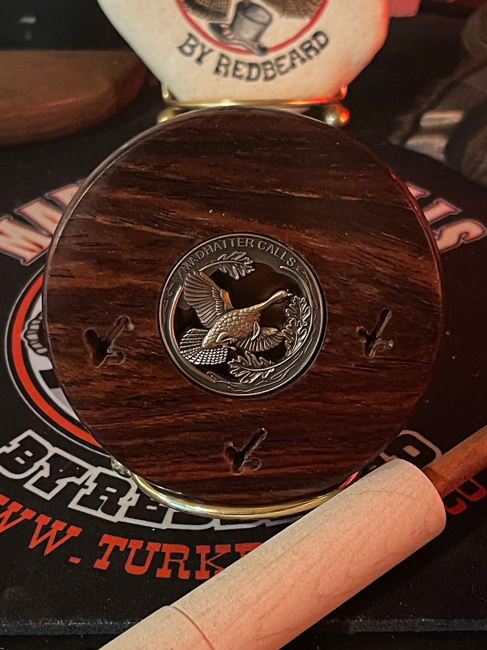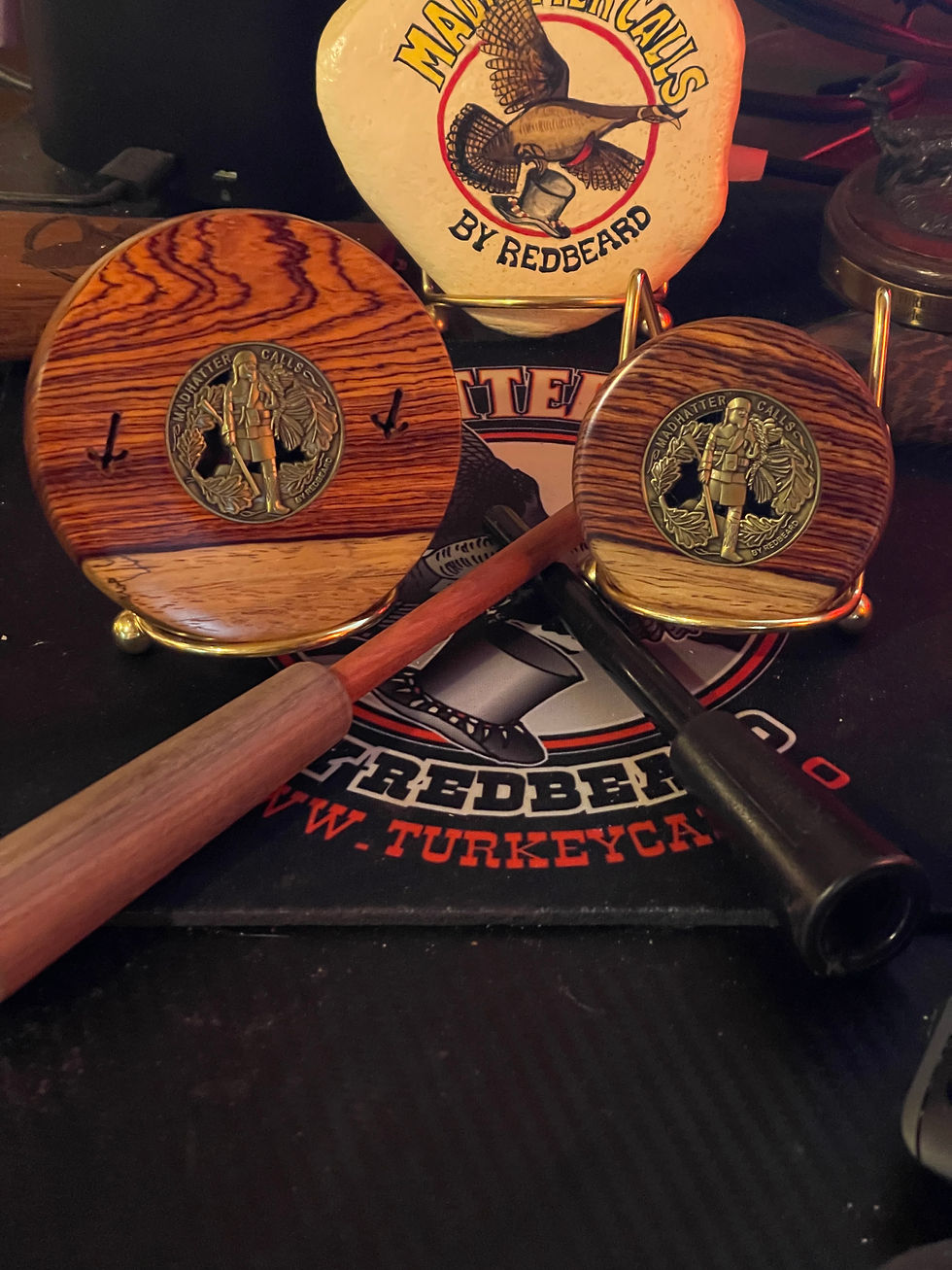 Here's a excellent sounding call from a gorgeous piece of Bolivian Rosewood. She's all hen fellas with an excellent rollover note with the amount of rasp to fool 'ol tom. 300.00 shipped with striker and logo embossed leather pouch.
